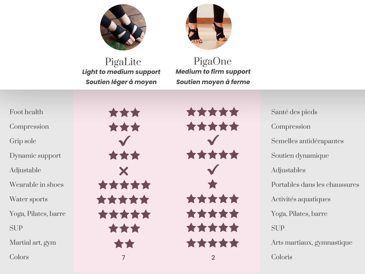 Whether you are looking for yoga socks, ballet socks, Pilates socks, barre socks martial arts socks, gym socks, or house socks… Whatever your need, we have the right pair for you! Both models come with the promise to help you build a stronger foundation for healthy feet thanks to our world-renowned dynamic support to confidently go barefoot with improved stability and control.